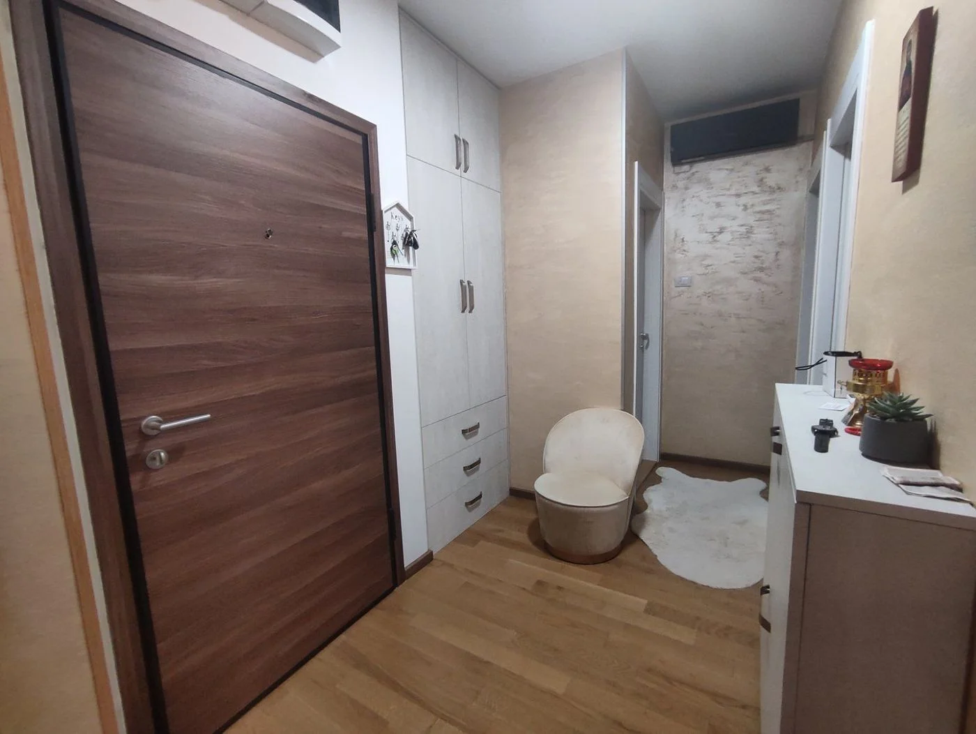 Predstavljamo vam izuzetan dvoiposoban stan na jednoj od najtaženijih lokacija u Gradu. Stan je nov u tek završenoj zgradi .Prodaje se kompletno namešten sa svim uređajima, kao što vidite na slikama. Strukturno je savršen, grejanje je po utrošku pa su računi izuzetno niski. Fantastično pozicioniran, udaljen od buke a opet blizina prometnih ulica i fantastična povezanost sa Gradom i centrom. Neposredna bliznina velikih marketa, apoteka i ostalih bitnih mesta za obavljanje svakodnevnih obaveza. Trenutno veoma retko na tržištu. Postoji mogućnost kupovine parking mesta u dvoristu zgrade. Ne propustite odličnu priliku i pozovite za više informacija