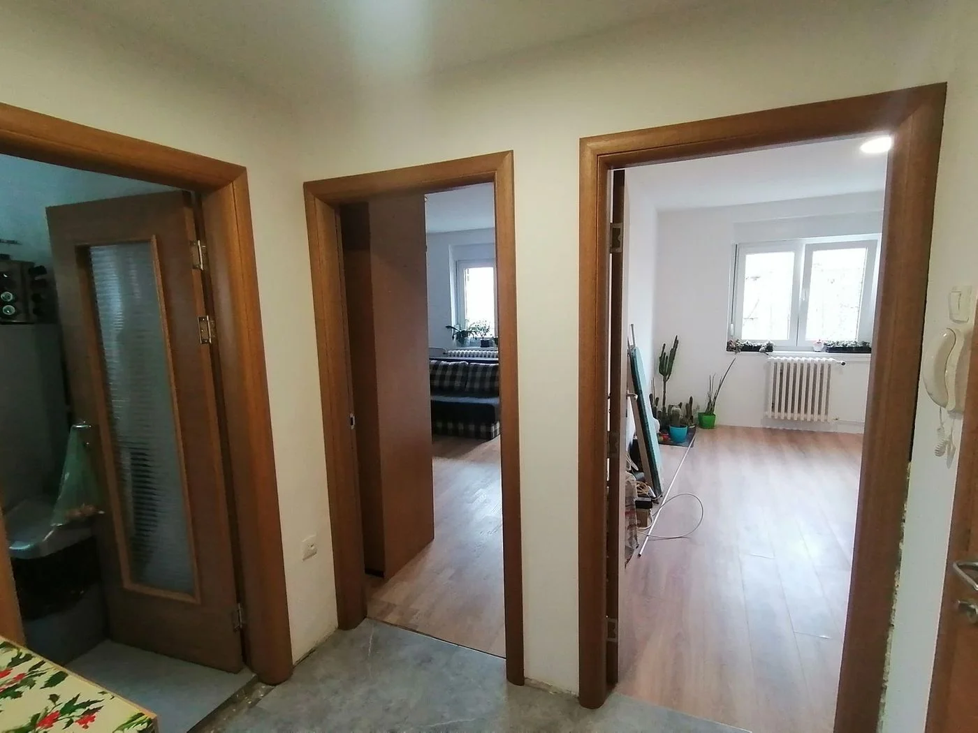 Strukturno odličan stan, kompletno renoviran, tako da je bez ikakvog ulaganja. Odličan kvalitet stolarije, vrata, poda. Prodaje se prazan, ima pripadajući podrum. Zgrada odlično održavana, okružena zelenilom, u blizini marketi, škola, vrtić, ali baš sve... Odmah useljiv po isplati. Uknjižen!
