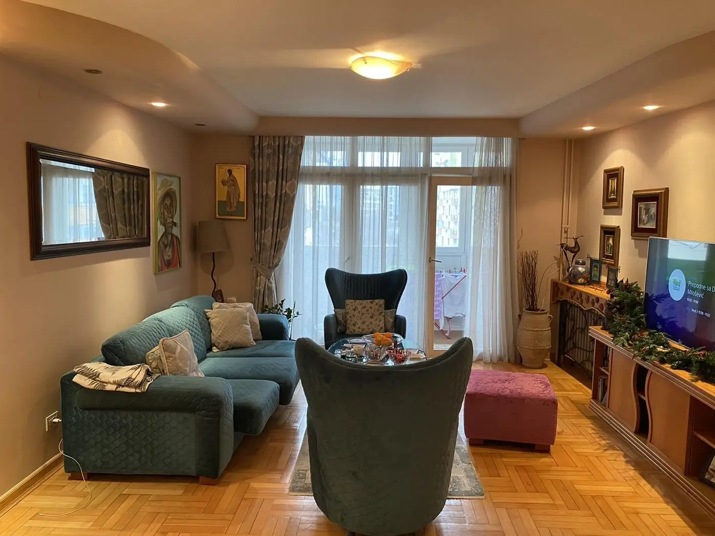 Predstavljamo Vam jedinstvenu nekretninu na tržištu: Komforan Četvorosoban stan koji odiše luksuzom sa idealno iskorištenim prostorom. Stan je dodatno rađen u izgradnji kako bi zadovoljio potrebe višečlane porodice. Opremljen je materijalima prve klase, sobna vrata su od punog drveta - masiv, radijatori su obloženi dekorativnim maskama - rezbareno drvo sa kovanim ukrasima. Dvostrano je orjentisan, dnevni boravak sa izlazom na terasu i master room su orjentisani na dvorište, dok su druge dve spavaće sobe koje su odvojene degažmanom orjentisane ka ulici koja nije prometna. Postoji mogućnost kupovine garaže od 19 kvadrata u dvorištu zgrade. Stan je od samog početka do kraja organizovan po Feng Šui sistemu.